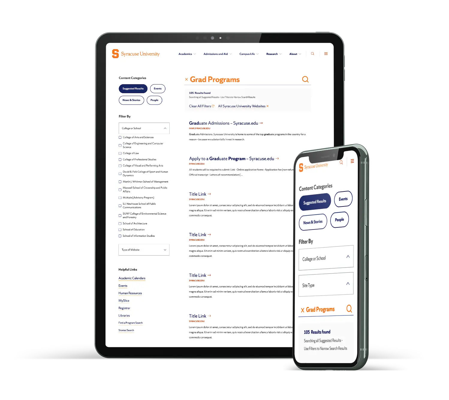 I analyzed a variety of college websites to see how prospective students navigate, search, and find information. Patterns like clear navigation, prominent search, bold calls to action, and scannable content inspired a redesign that meets user expectations, boosts discoverability, and makes exploring Syracuse.edu intuitive and effortless.